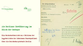 Die Geheime Staatspolizei (Gestapo) war eine der zentralen Organisationen im Dritten Reich, die dem nationalsozialistischen Regime dazu dienten, seine Macht zu sichern und seine Gegner zu überwachen und zu beseitigen. In ihren sogenannten Lageberichten wurden Meldungen über Ereignisse und Reaktionen der Bevölkerung auf politische Maßnahmen der Nationalsozialisten gesammelt und an die NS-Führung weitergeleitet. Heute können sie als wichtige Quelle für die Erforschung von staatlichem Terror und Gewalt, insbesondere in der Frühphase des Nationalsozialismus dienen. Insbesondere zu den politischen Rahmenbedingungen in der Reichshauptstadt Berlin geben die Berichte Auskunft. Die Historische Kommission zu Berlin erarbeitet aktuell die Edition der Gestapo-Lageberichte für Berlin von 1933–1936.