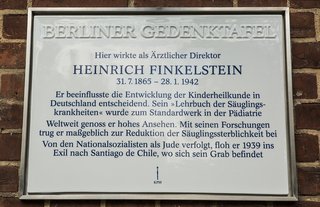1865 in Leipzig geboren, studierte er zunächst Geologie in München und wandte sich ab 1888 einem Studium der Medizin in seiner Heimatstadt Leipzig zu. 1892 zum Doktor der Medizin promoviert, war er ab 1894 in der Berliner Charité als Assistent tätig und habilitierte sich 1899 mit einer Arbeit Über Mittelohrentzündung bei Säuglingen. 1918 übernahm er die Leitung des Kaiser- und Kaiserin-Friedrich-Kinderkrankenhauses als Ärztlicher Direktor und wirkte dort bis zu seiner Emeritierung am 1. März 1933. Heinrich Finkelstein verband in seiner beruflichen Karriere die praktische Tätigkeit als Kinderarzt äußerst erfolgreich mit der wissenschaftlichen Forschung. Unzählige Publikationen entsprangen seiner Feder, darunter das Lehrbuch für Säuglingskrankheiten, das zum Standardwerk wurde und in mehreren Auflagen – auch im Ausland – erschien. Es vermittelte Generationen von Kinderärzten Fachwissen. Als Jude im Kaiserreich sowie in der Weimarer Republik diskriminiert, war ihm die Ernennung zum Ordentlichen Professor verwehrt. Mit dem Beginn der Nazi-Diktatur erschwerte sich auch für Heinrich Finkelstein jegliche Berufsausübung; 1934 wurde ihm die Kassenzulassung entzogen und 1936 die Lehrbefugnis aberkannt. Doch Heinrich Finkelstein hatte sich sowohl in Deutschland als auch im Ausland aufgrund seiner fachlichen Kompetenz großes Ansehen erworben. Bedingt auch durch die ausländischen Karrieren einiger seiner Schüler erhielt er mehrere Einladungen ins Ausland, 1936/37 war er an der University of Chicago zu Gast. 1939 schließlich floh er vor dem Terror der Nationalsozialisten mit seiner Schwester Charlotte nach Chile, wo er im Januar 1942 verstarb. Heinrich Finkelstein war über Deutschland hinaus einer der großen Kinderärzte seiner Zeit und noch nach seinem Tode beeinflussten seine Werke die Kinderheilkunde.