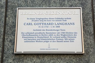 1. Oktober 2018 — Gedenktafel-Enthüllung zu Ehren von Carl Gotthard Langhans — 17 Uhr, Charlottenstraße 49, 10117 Berlin