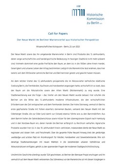 15. Oktober 2022 – Einsendeschluss – Call for Papers – Wissenschaftliches Kolloquium zum Neuen Markt in Berlin