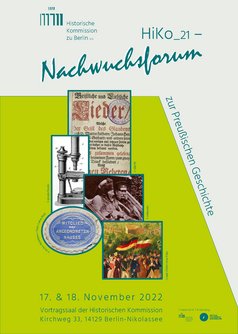 Das erste HiKo_21 – Nachwuchsforum findet am 17. & 18. November 2022 im Vortragssaal der Historischen Kommission im Mittelhof (Kirchweg 33, 14129 Berlin) statt. Das Programm finden Sie hier. Das Spektrum der Vorträge reicht von den Abgeordneten im Preußischen Abgeordnetenhaus bis zur Medizin im langen 19. Jahrhundert. Bitte melden Sie sich bis zum 7. November 2022 unter info[-at-]hiko-berlin.de an.